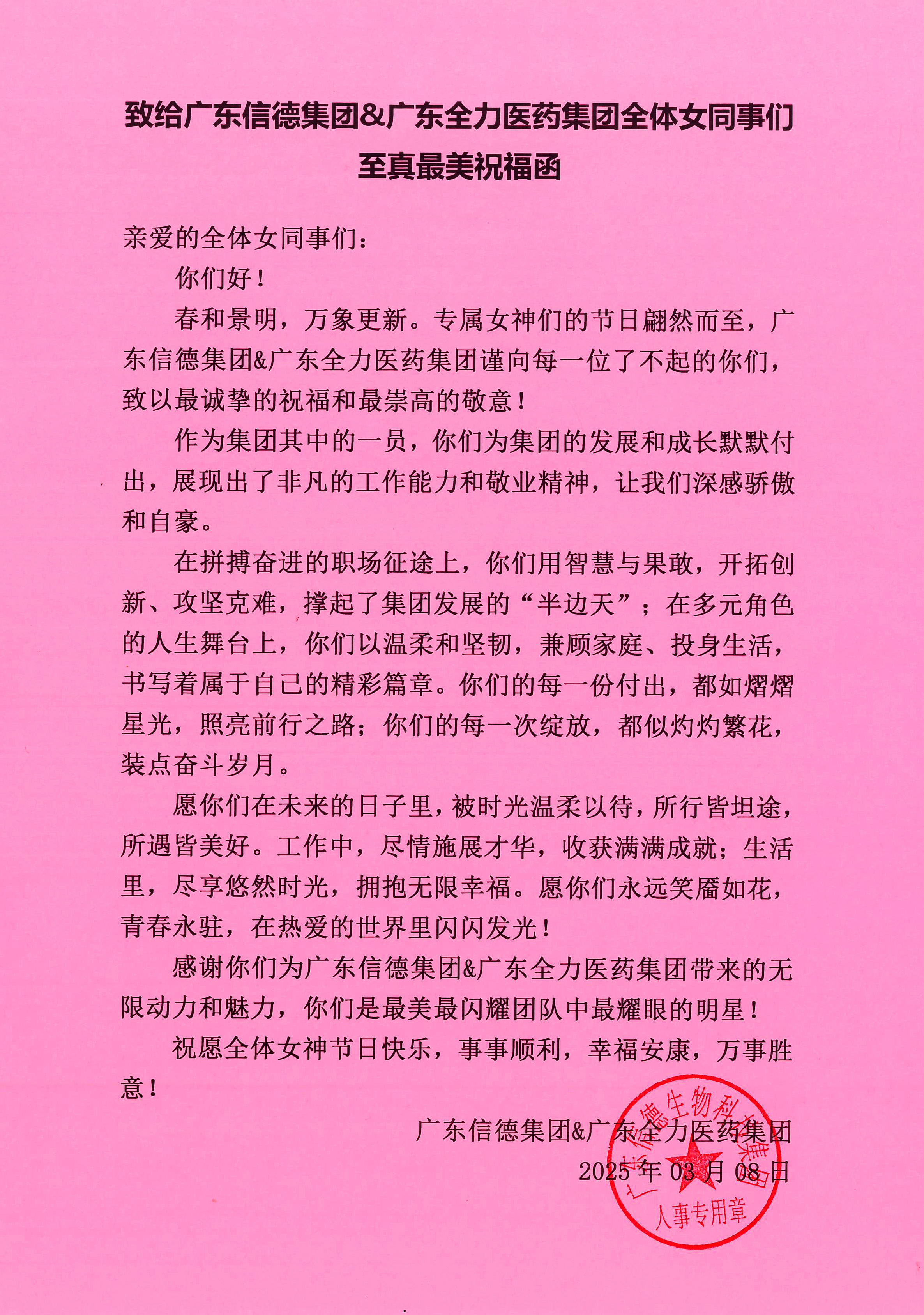 致给广东信德集团&广东全力医药集团全体女同事们至真最美祝福函